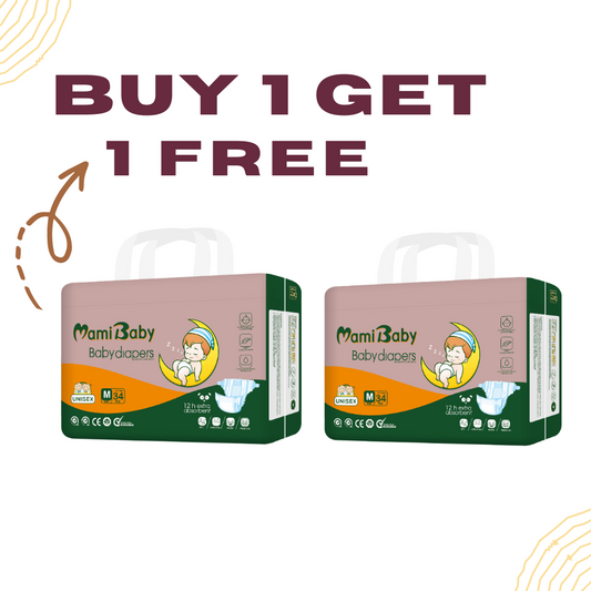 Mami Baby Diapers – Top Absorbency (12-Hour Protection) (Buy 1 Get 1 Free)